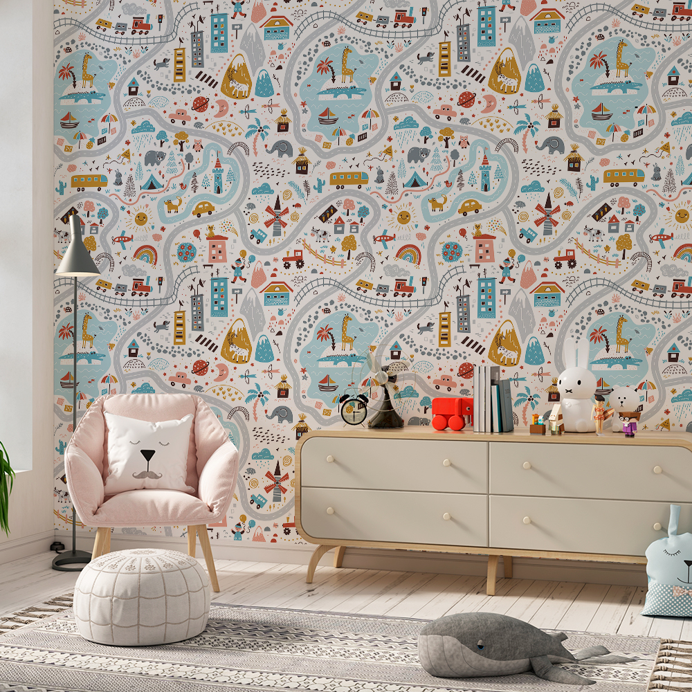 Papel de Parede Cidade Com Animais e Elementos Variáveis