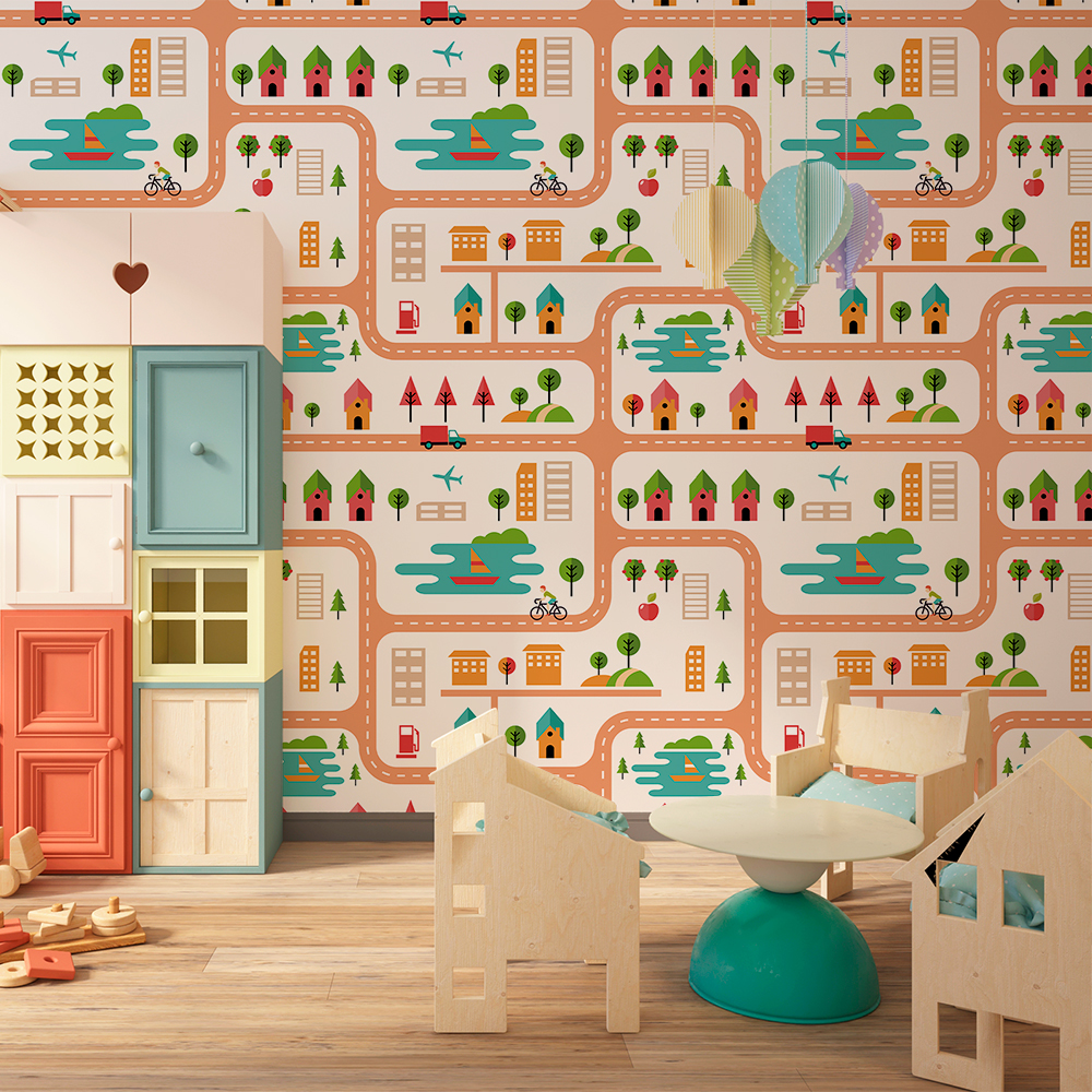 Papel de Parede Cidade Com Prédios e Carros Flat