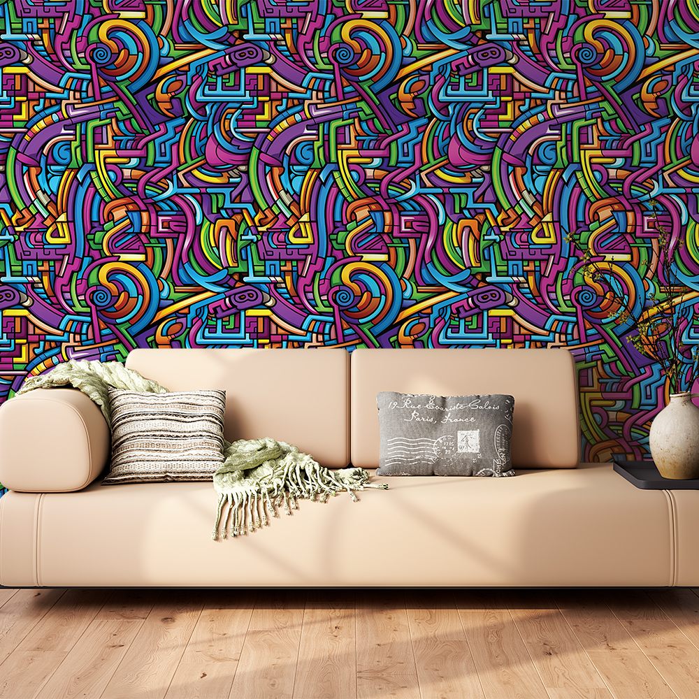Papel de Parede 3D Colors Abstrato Labirinto Multicolorido