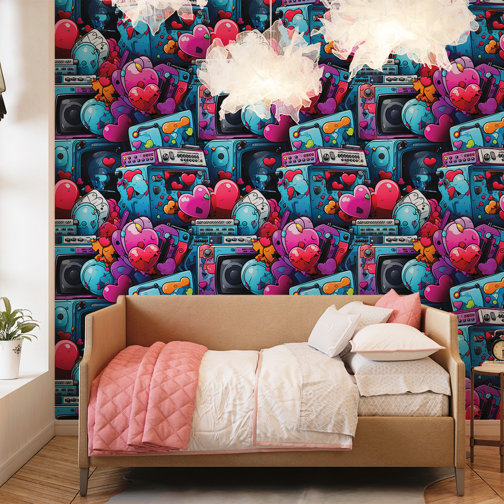 Papel de Parede 3D Colors Caixas de Musica Romântico
