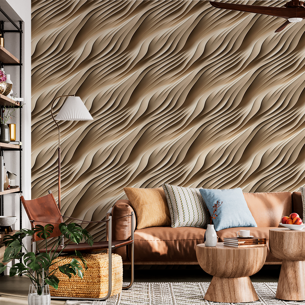 Papel de Parede 3D Ondas em Camadas Esculturais Bege