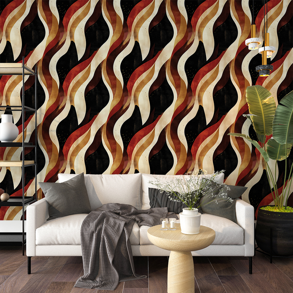 Papel de Parede Abstrato Curvas Fluídas em Tons Quentes