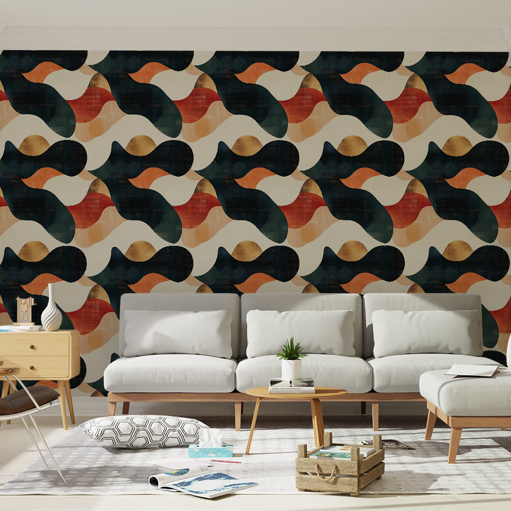 Papel de Parede Abstrato Formas Orgânicas em Tons Quentes