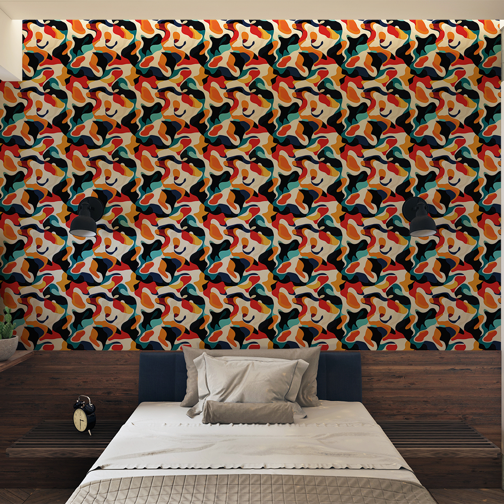 Papel de Parede Abstrato Manchas Orgânicas Tons Quentes
