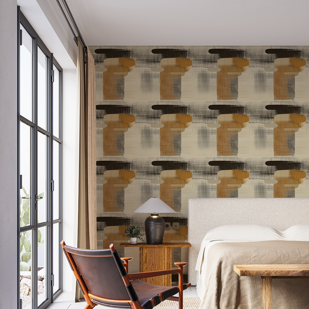Papel de Parede Abstrato Textura Linhas Finas Marrom e Bege