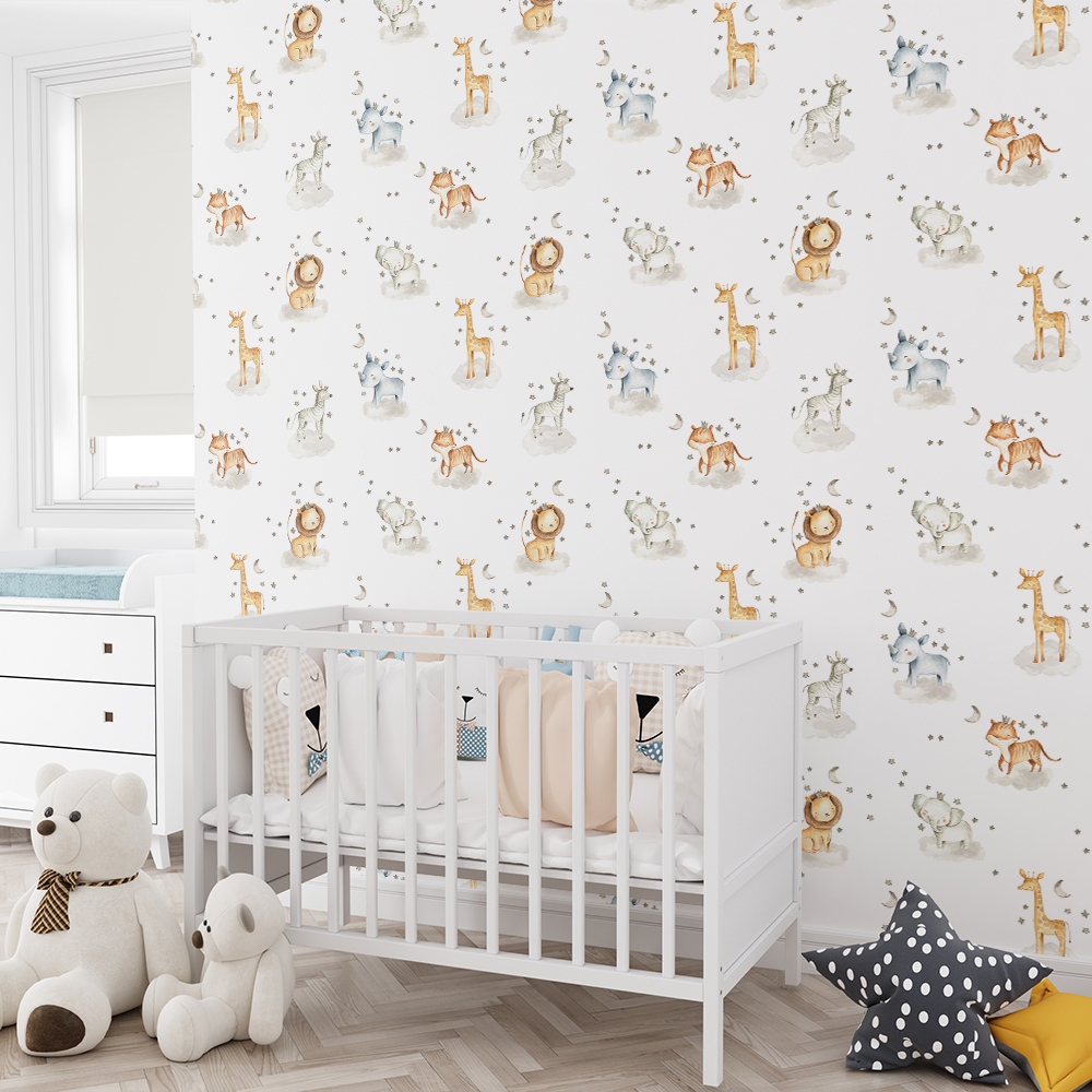 Papel de Parede Animais Fofos e Estrelas Cinzas