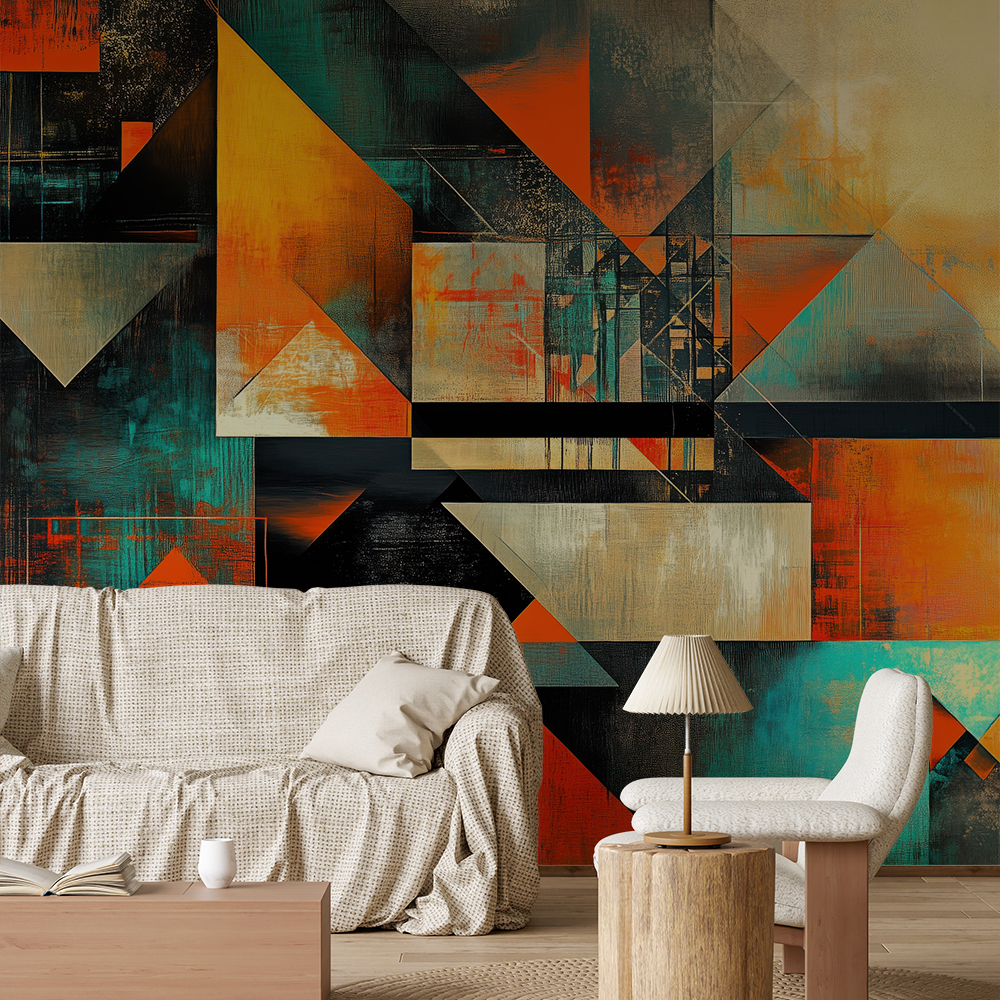 Papel de Parede Triângulos Laranja e Esmeralda