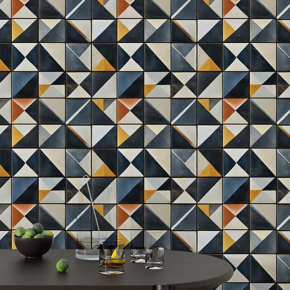 Papel de Parede Azulejo Geométrico Triângulos Azul Marinho Moderno