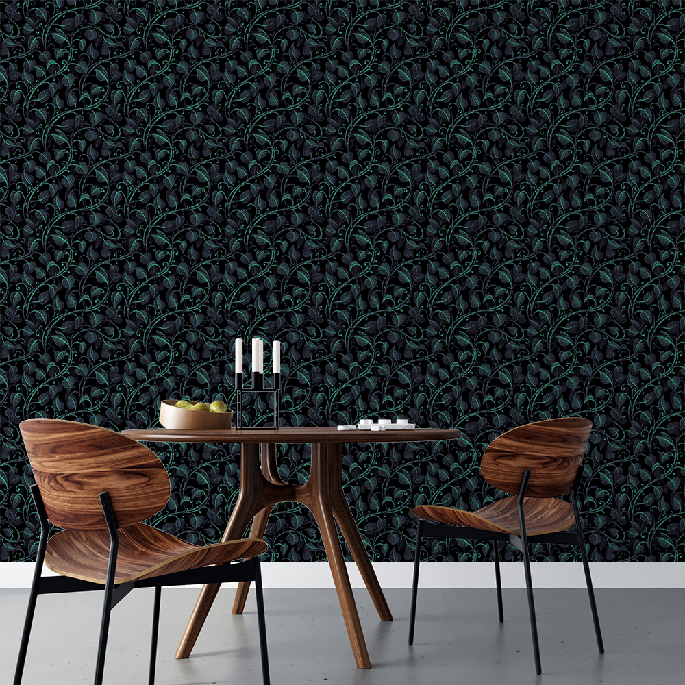 Papel de Parede Folhas de Jardim Vertical Samambaia Escura