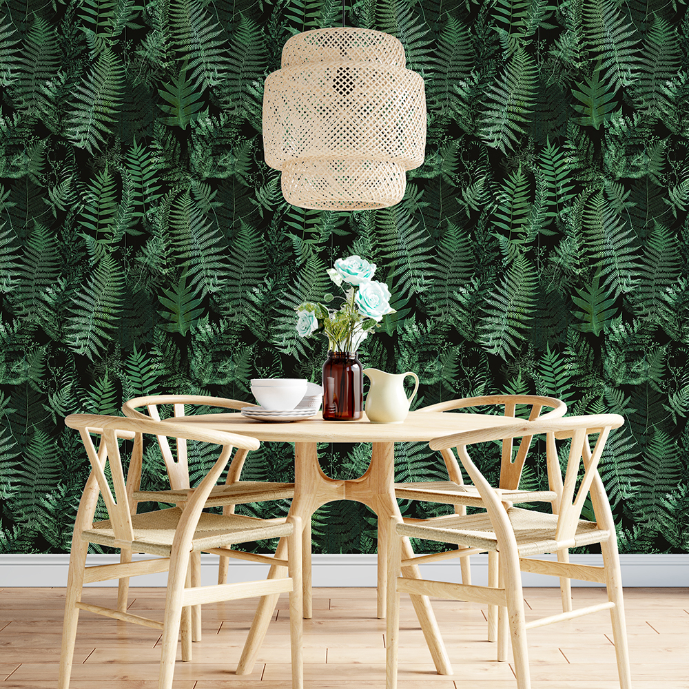 Papel de Parede Folhas de Samambaia Verde Escuro