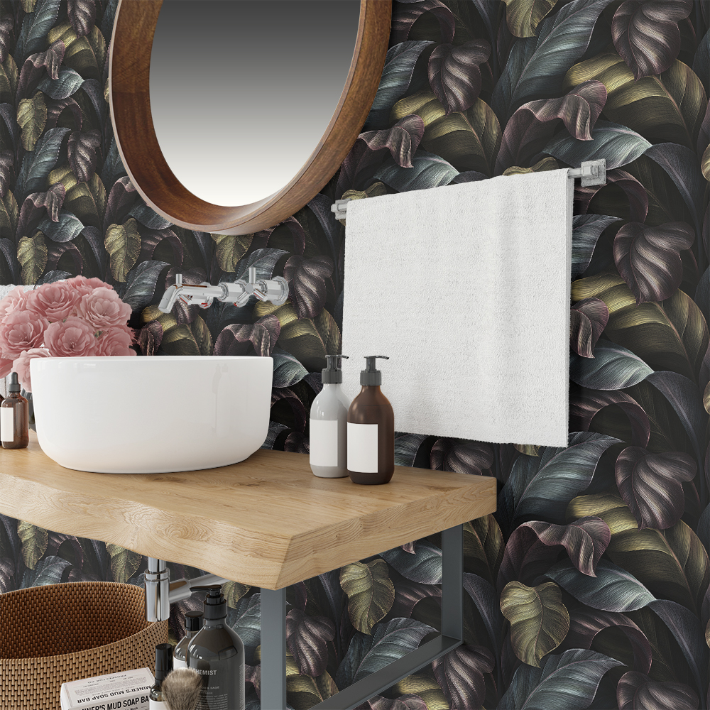Papel de Parede Folhas Grandes Coloridas Sofisticado