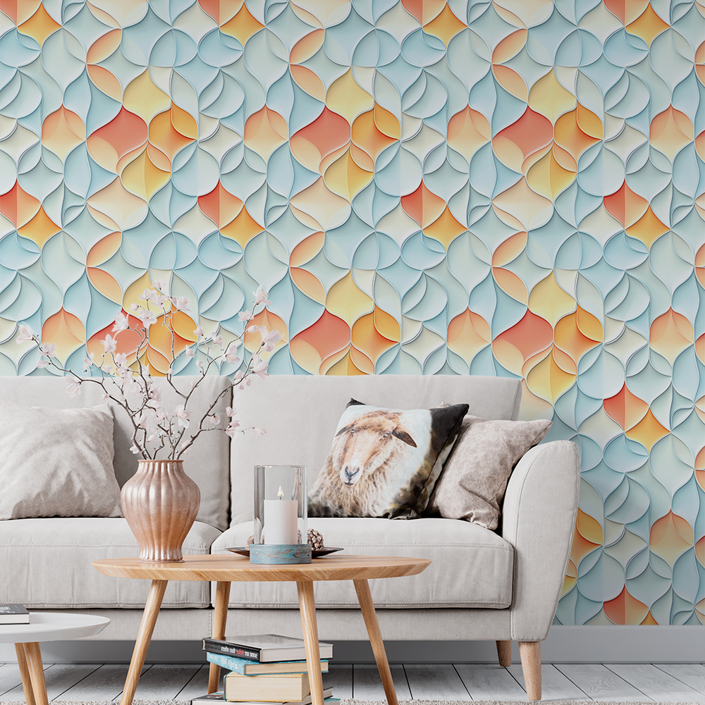 Papel de Parede Geométrico Mosaico Gotas de Aquarela