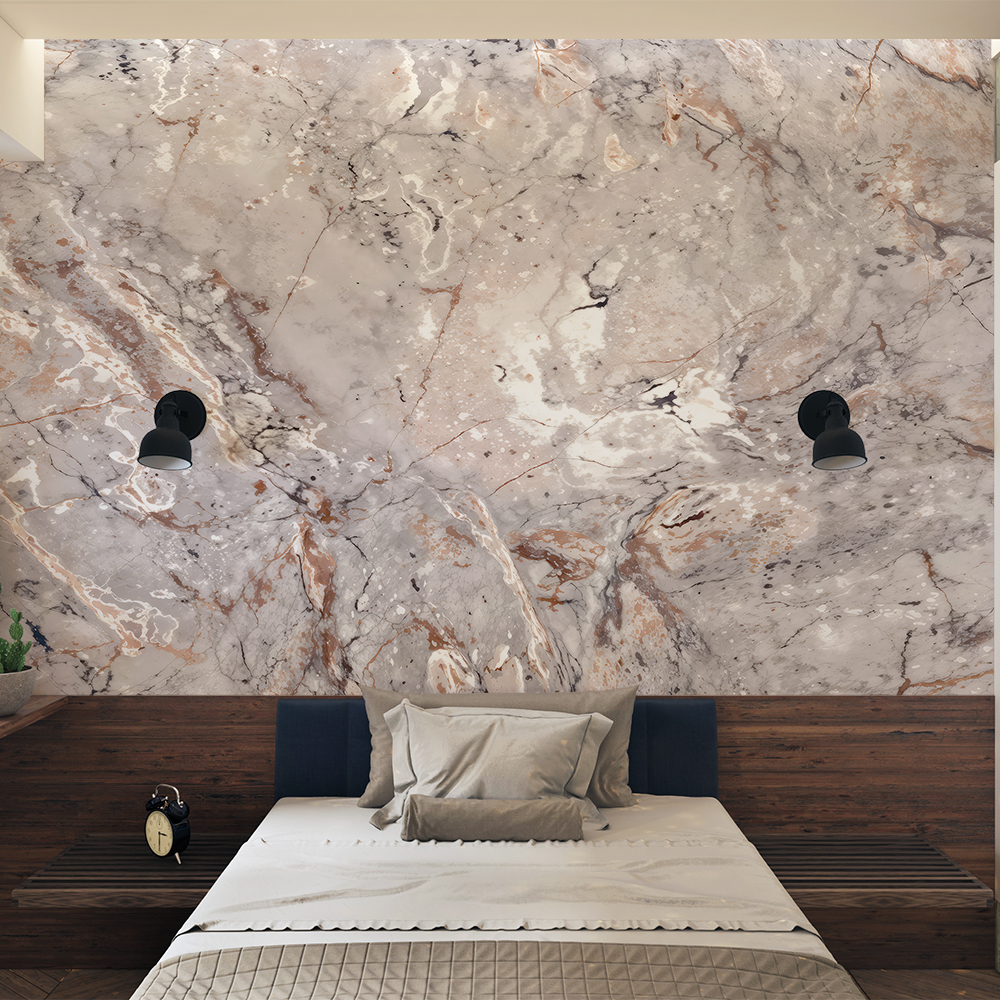 Papel de Parede Mármore Abstrato Cinza e Cobre Luxo