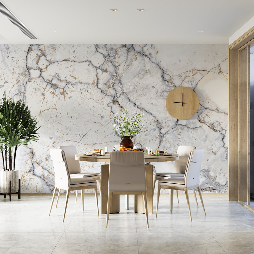 Papel de Parede Mármore Branco Veios Cinza Escuro e Ocre