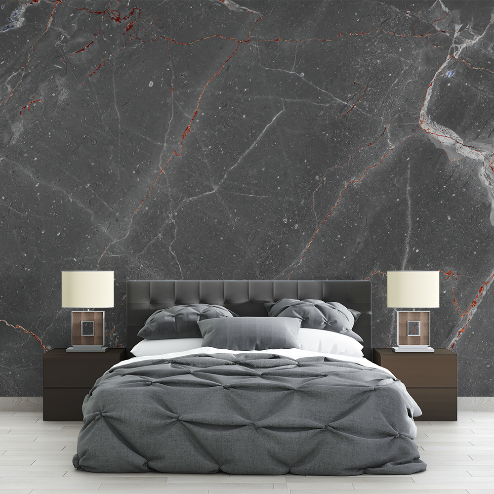 Papel de Parede Mármore Cinza Escuro Veios Cobre