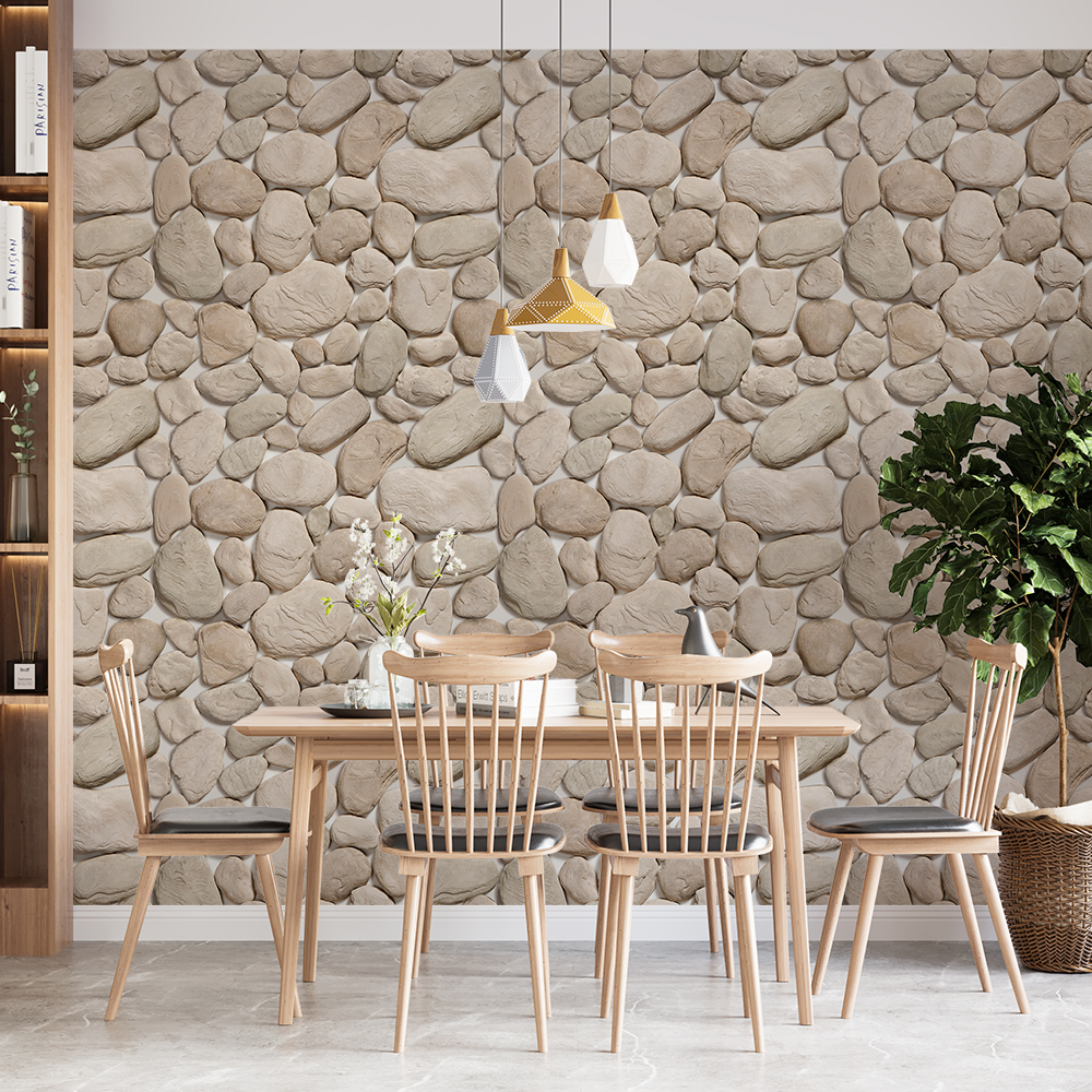 Papel de Parede Pedra de Rio Rústica Bege Claro