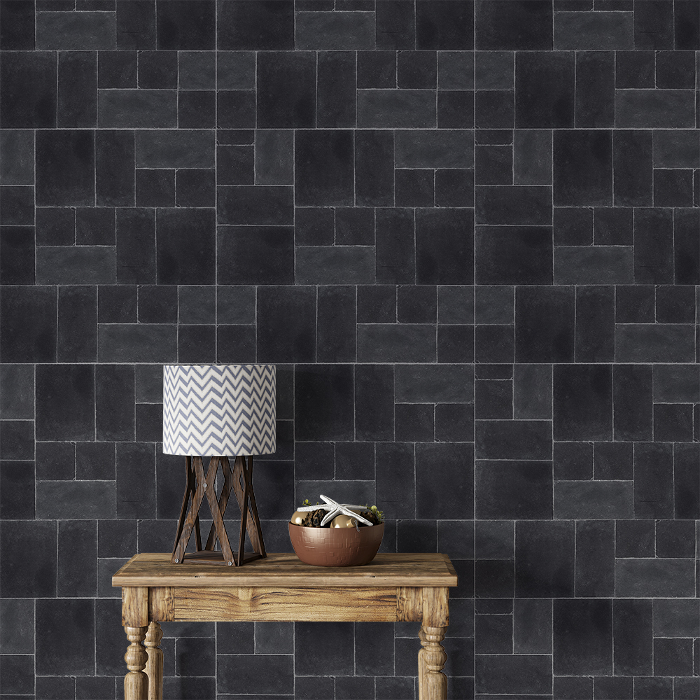 Papel de Parede Pedras Quadradas Mosaico Cinza Escuro